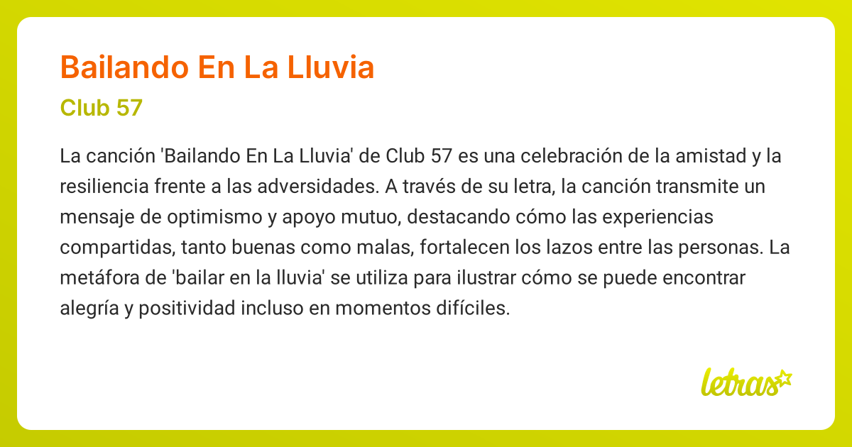 Significado De La Canción BAILANDO EN LA LLUVIA (Club 57) - LETRAS.COM